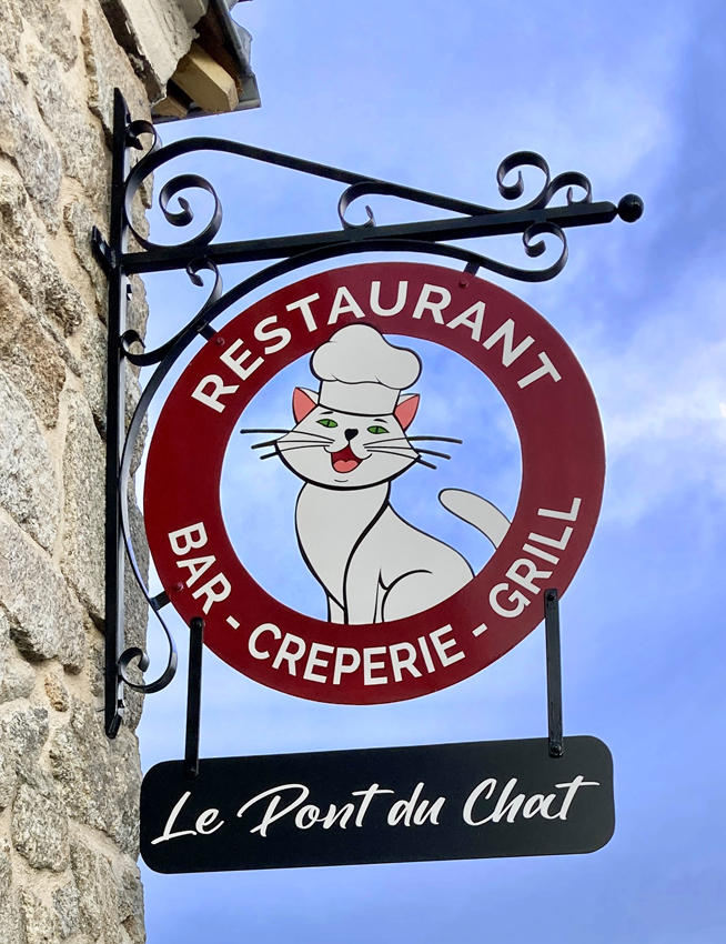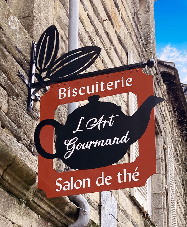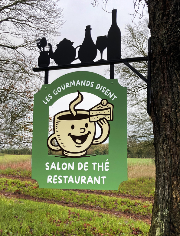 Soutenues par une potence en fer forgé composée de volutes aux formes harmonieuses, ces enseignes sont réalisées en tôle d’acier ou en bois.